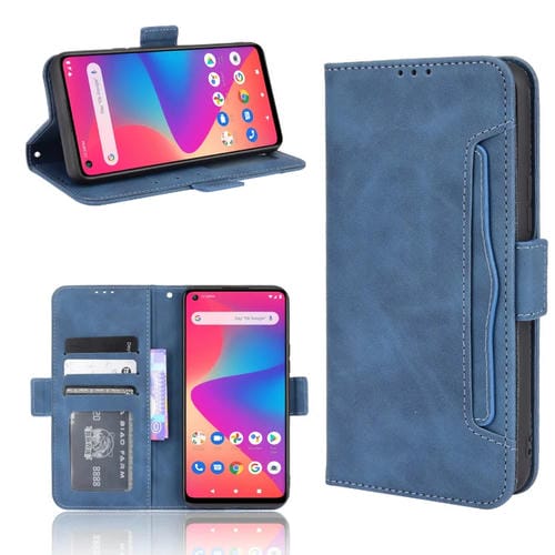 Funda de Cuero Flip para Blu G91 con Soporte, Ranuras para Tarjetas y Marco de Fotos (Azul)