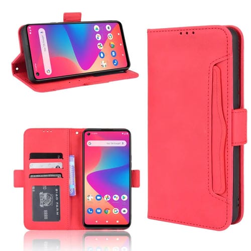 Funda de Cuero Flip para Blu G91 con Soporte, Ranuras para Tarjetas y Marco de Fotos (Rojo)