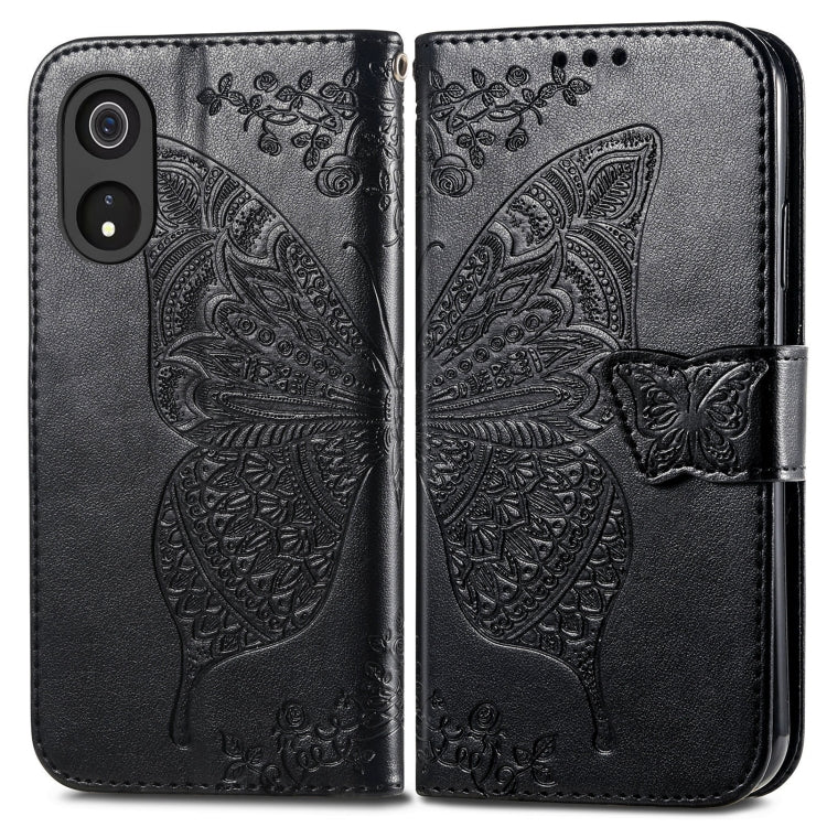 Funda para Cubot P60 Butterfly Love Flower de Cuero en Relieve (Negro)