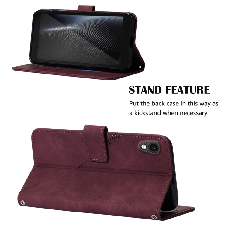 Funda de Cuero para Cubot Pocket Crossbody con Tapa en Relieve (Rojo Vino)
