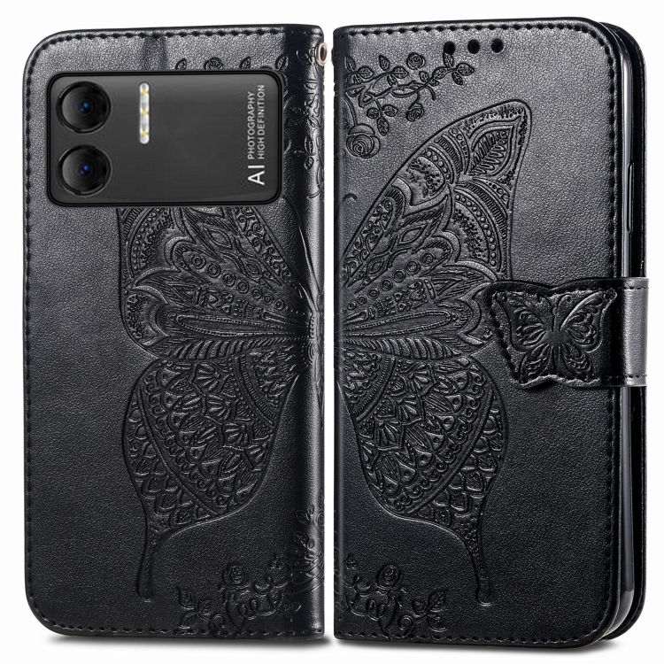 Estuche para Teléfono Doogee X98 Pro y X98 Butterfly Love Flower Cuero En Relieve (Negro)