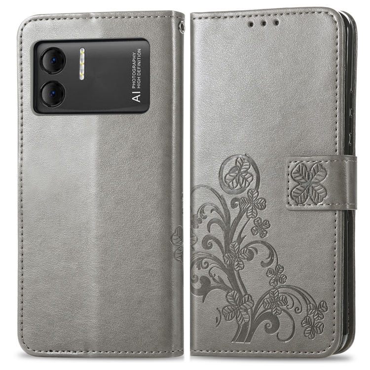 Estuche para Teléfono Doogee X98 Pro X98 Cuero Hebilla En Relieve Cierre de Cuatro Hojas (Gris)