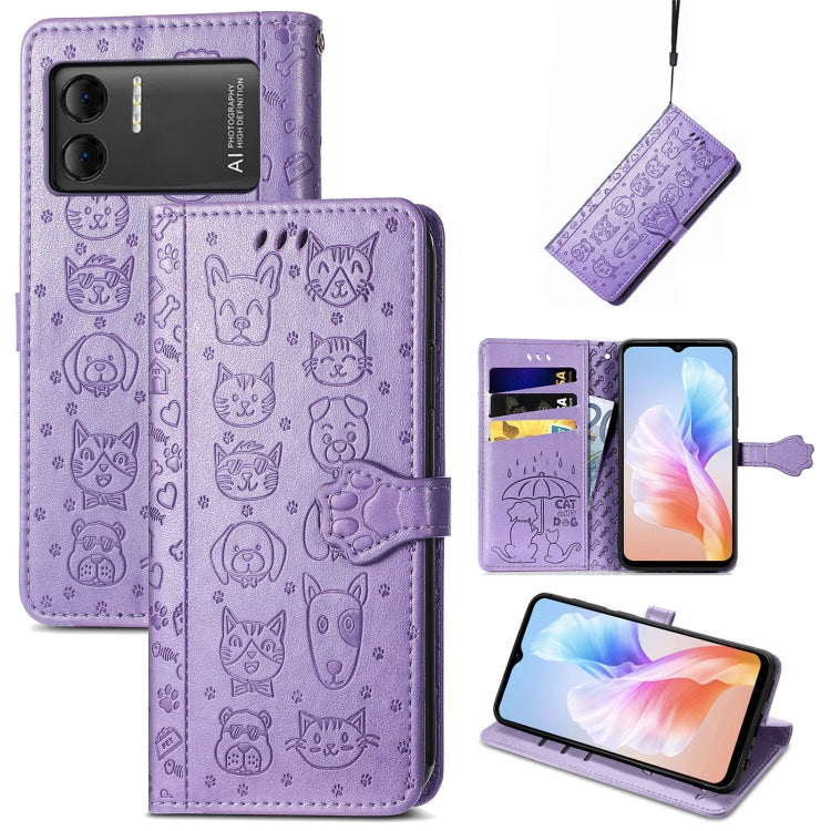 Estuche para Doogee X98 Pro y X98 de Cuero en Relieve para Gatos y Perros (Púrpura)