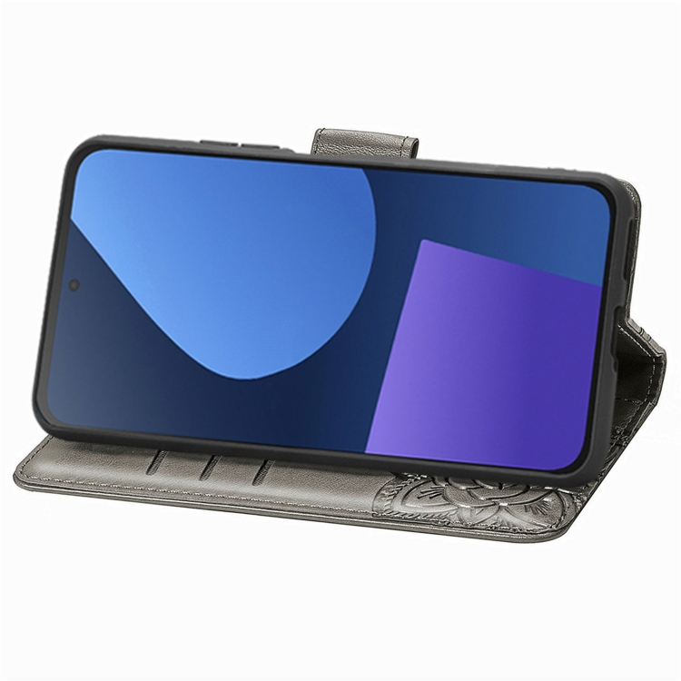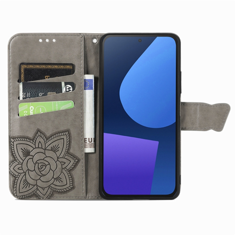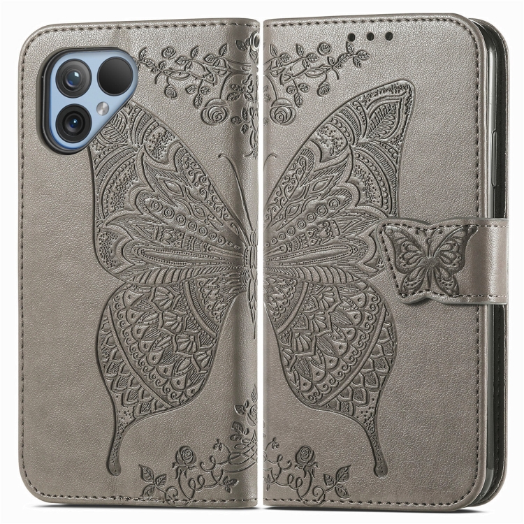 Funda para Fairphone 5 de Cuero con Relieve Flor Amor Mariposa (Gris)