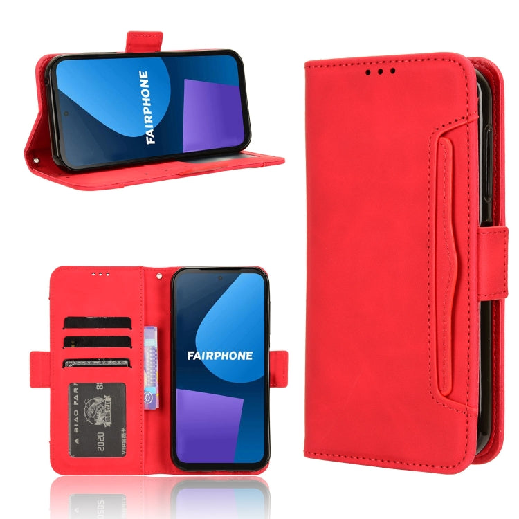 Funda de Cuero para Fairphone 5 Skin Feel Becerro con Ranuras para Tarjetas (Rojo)