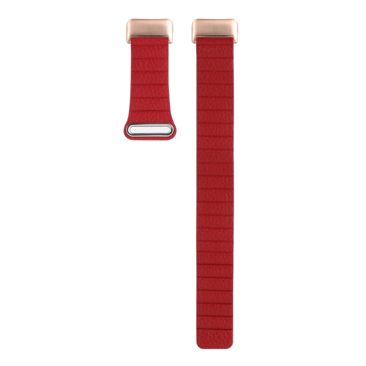 Correa de Reloj de Cuero para Fitbit Charge 5 con Bucle Magnético (Rojo)
