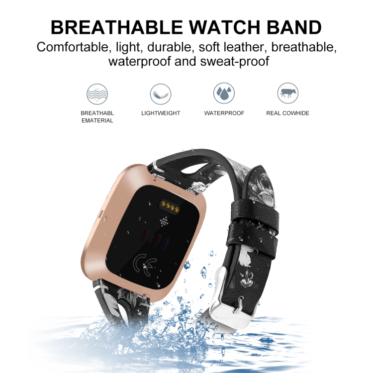 Correa de Cuero para Fitbit Versa 2 Apertura Media (Flores de Ceniza Negra)