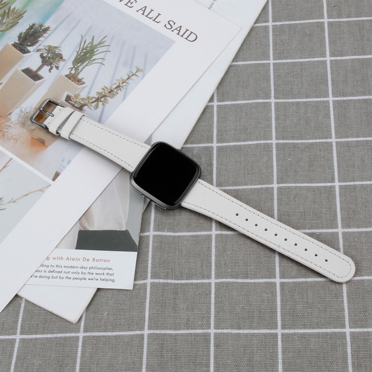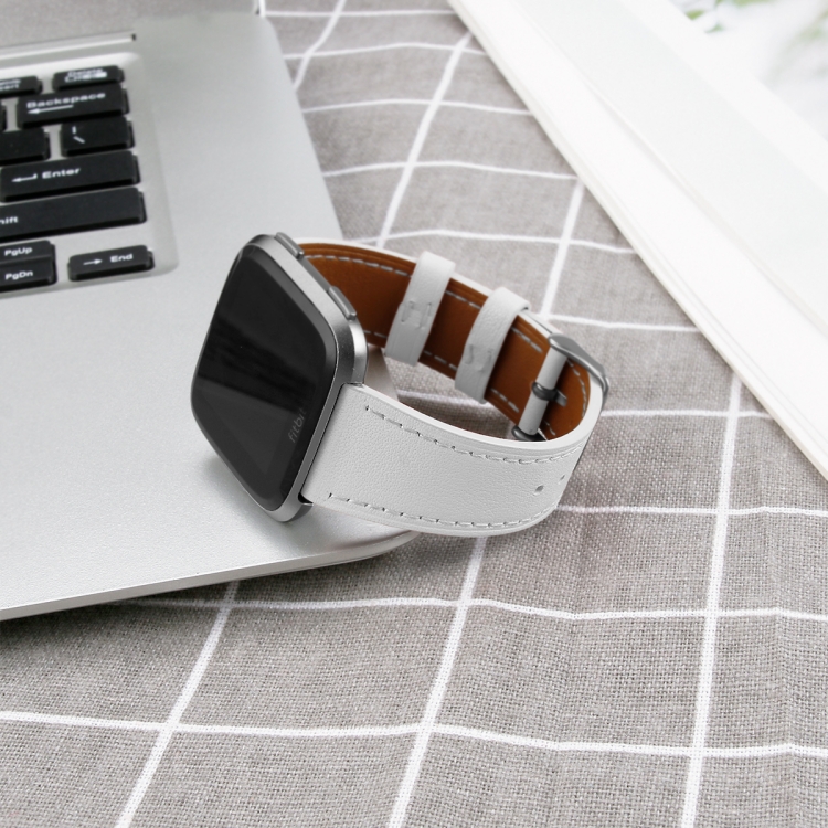 Para Fitbit Versa 2 / Fitbit Versa / Fitbit Versa Lite Leather Watch Band con hebilla redonda (blanco)