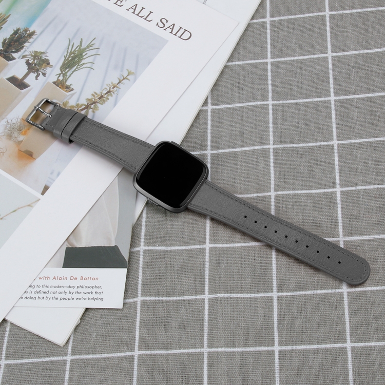 Correa de Cuero para Fitbit Versa 2 Versa Versa Lite con Hebilla Redonda (Gris)