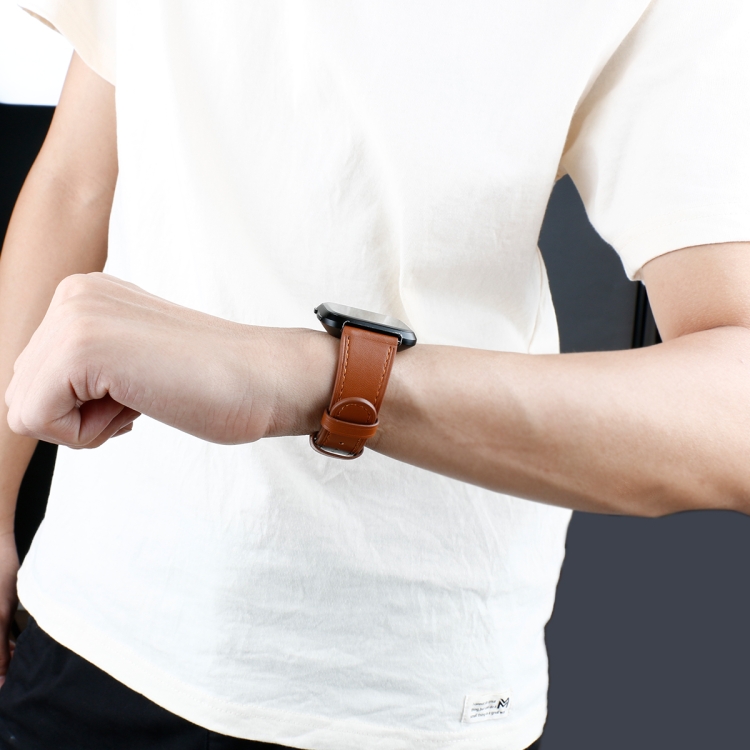 Correa de Cuero para Fitbit Versa 2 Versa Versa Lite con Hebilla Redonda (Marrón)