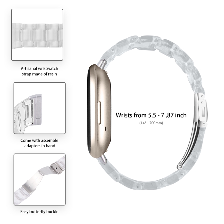 Correa de Reloj de Resina para Fitbit Versa 3 y Sense Universal (Transparente)