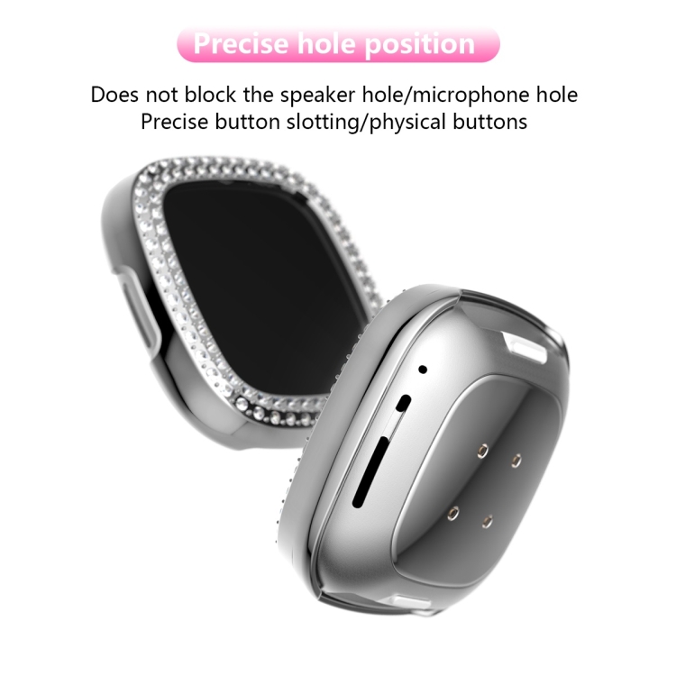Para Fitbit VERSA 3 / VERSA SENSE SENSE DOBLE ROW CLATCHS DIAMANTES PC Funda protectora (Plata)