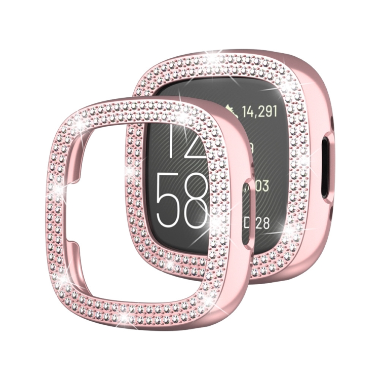 Estuche para Fitbit Versa 4 y Sense 2 con Galvanoplastia de Diamante Doble Fila (Rosa)
