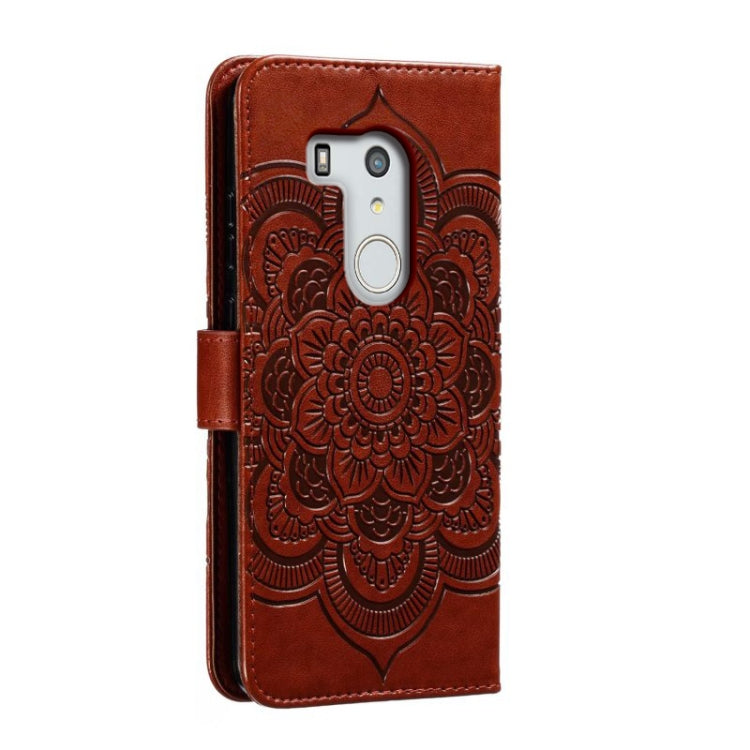 Funda de Cuero para Fujitsu Arrows Be3 F-02L con Patrón en Relieve (Marrón)