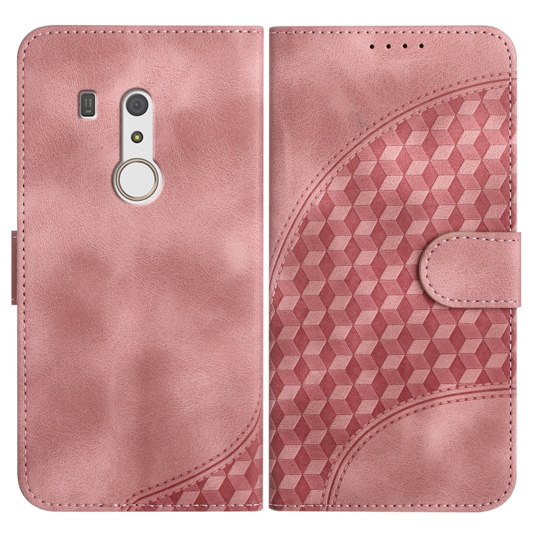 Funda de Cuero para Fujitsu Arrows Be3 Yx0060 con Relieve y Cabeza de Elefante con Cordón (Rosa)