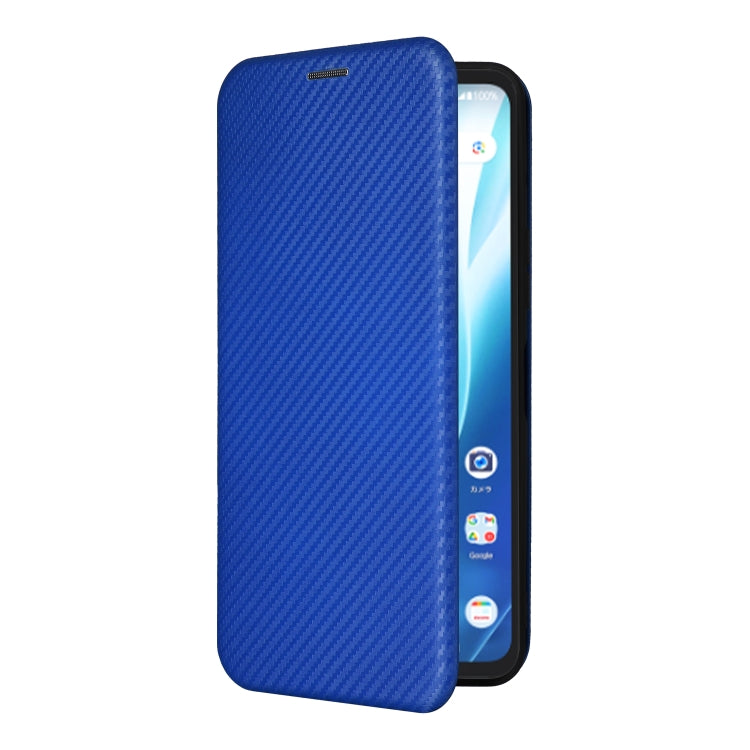 Funda de Cuero con Tapa para Fujitsu Arrows F-51E We2 Plus con Textura de Fibra de Carbono (Azul)
