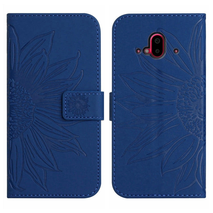 Funda Flip de Cuero Fujitsu Arrows F-52B Skin Feel con Cordón y Patrón Sun Flower (Azul Oscuro)