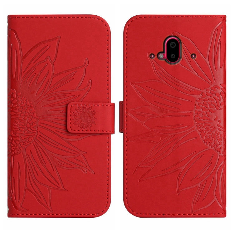 Funda de Cuero flip para Fujitsu Arrows F-52B con Cordón y Diseño Sun Flower (Rojo)