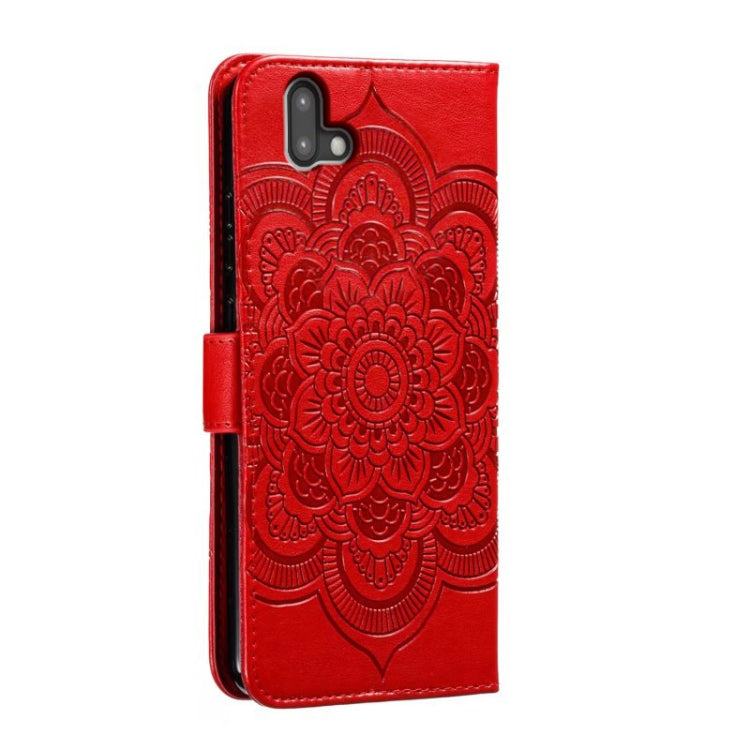 Funda de Cuero para Fujitsu Arrows U Sun Mandala con Patrón en Relieve (Rojo)