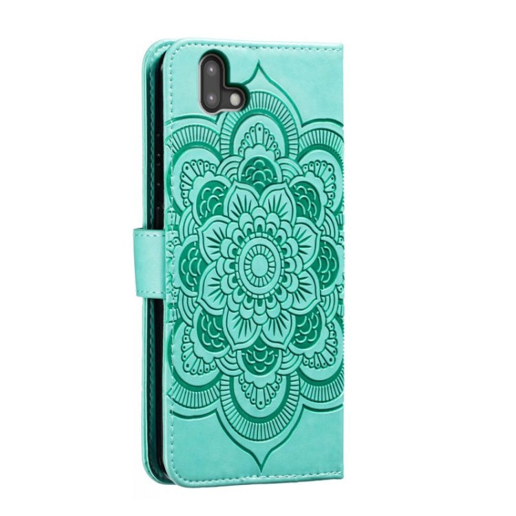 Funda de Cuero para Fujitsu Arrows U Sun Mandala con Patrón en Relieve (Verde)