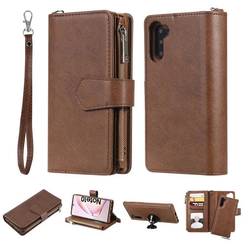 Estuche Protector 2 en 1 Galaxy Note 10 con Cremallera Ranuras para Tarjetas Soporte y Billetera (Marrón)