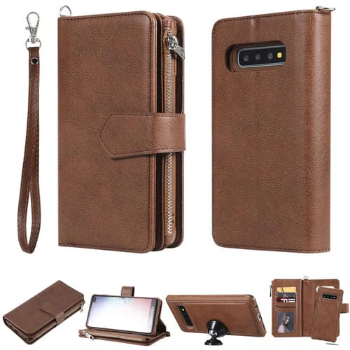 Estuche Protector 2 en 1 Samsung Galaxy S10 Plus con Cremallera, Ranuras para Tarjetas, Soporte y Billetera (Marrón)