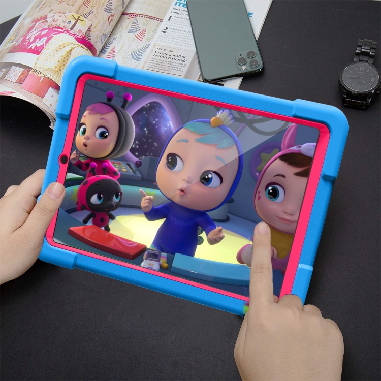 Funda para Galaxy Tab A 8.4 (2020) T307 PC + Silicona a Prueba de Golpes con Soporte Giratorio 360° y Asa (Azul + Rosa Roja)