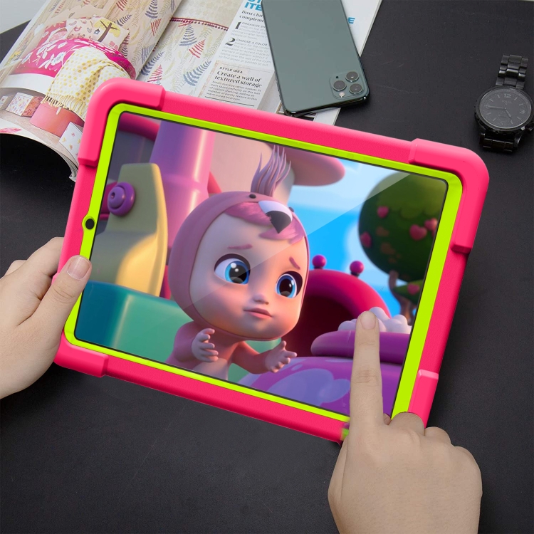 Funda para Galaxy Tab A 8.4 (2020) T307 PC + Estuche Silicona Antigolpes con Soporte Giratorio y Asa (Rosa Roja + Verde Hierba)