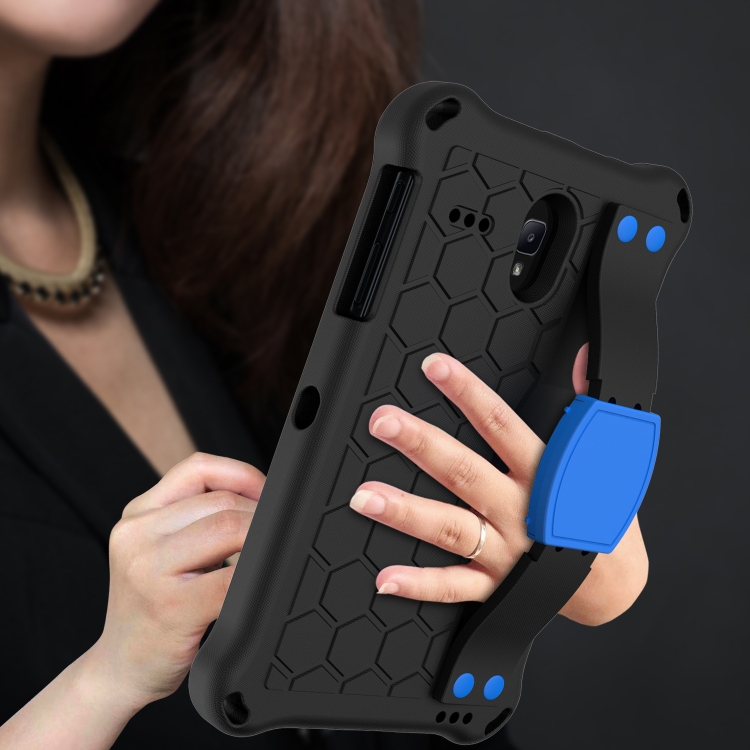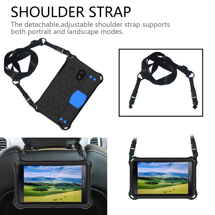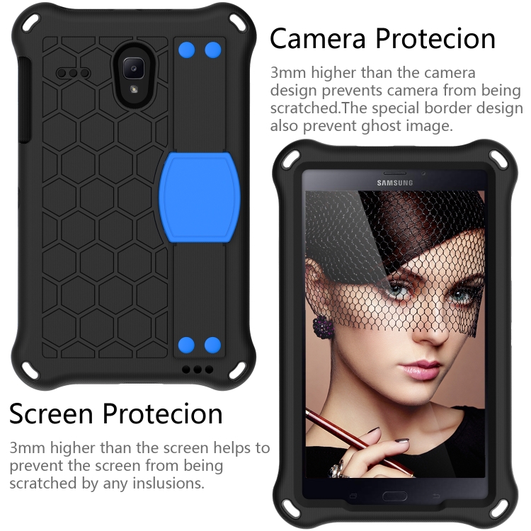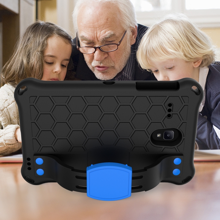 Carcasa Protectora para Galaxytab A 8.0 T380 (2017) con Diseño Panal Eva + Pc Anticaída Cuatro Esquinas con Correas (Negro + Azul)