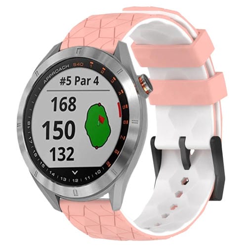 Banda de Reloj Garmin Approach S40 20mm Silicona Patrón de Fútbol (Rosa + Blanco)