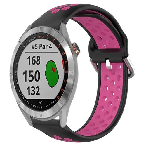 Banda de Reloj Silicona Deportiva para Garmin Approach S40 20mm (Negro + Rojo Rosa)