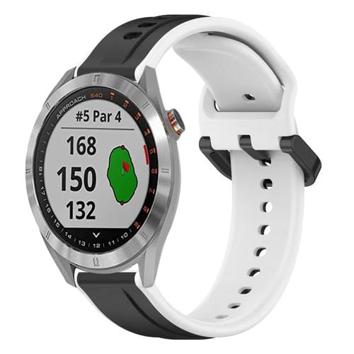 Correa de Silicona para Garmin Approach S40 20mm con Bucle Convexo (Negro + Blanco)