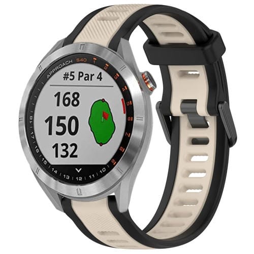 Correa de Reloj para Garmin Approach S40 Silicona Texturizada Dos Colores 20mm (Starlight + Negro)
