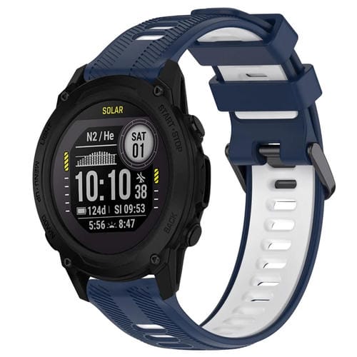 Banda de Reloj de Silicona para Garmin Descent G1 Sports (Azul Medianoche + Blanco)