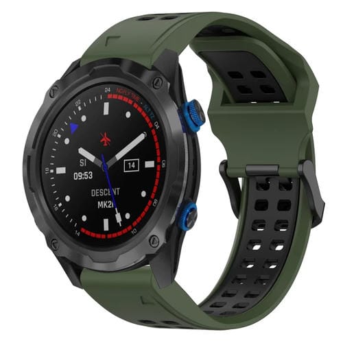 Correa de Reloj para Garmin Descent Mk 2I 26mm Silicona con Hebilla Inversa (Verde Militar + Negro)
