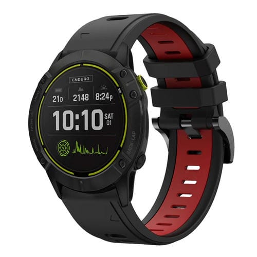 Para Garmin Enduro 26mm Banda de Reloj de Silicona Deportiva de Dos Colores (Negro + Rojo)