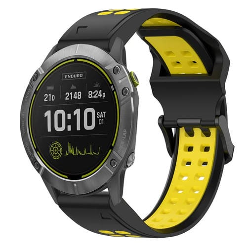 Correa de Reloj para Garmin Enduro 26mm Silicona Hebilla Inversa Dos Colores (Negro + Amarillo)