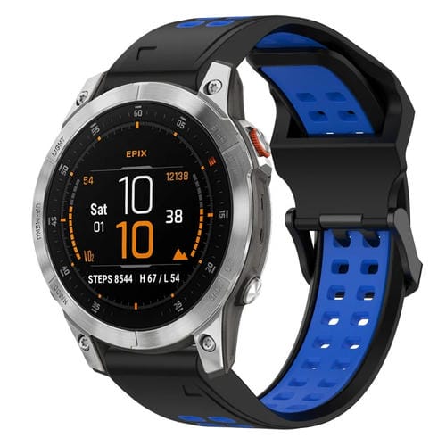 Para Garmin Epix Gen 2 22mm Correa de Reloj de Silicona con Hebilla Inversa de Dos Colores (Negro + Azul)