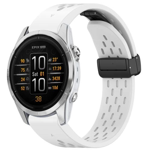 Correa de Silicona para Garmin Epix Pro 42mm 20mm con Hebilla Plegable Magnética (Blanco)