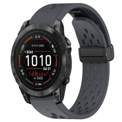 Correa de Reloj para Garmin Epix Pro 47mm 22mm Silicona con Orificio y Hebilla Plegable (Gris Oscuro)