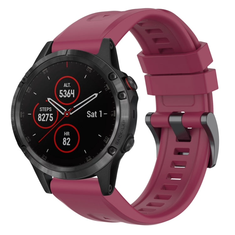 Correa de Reloj Garmin Fenix 5 y Fenix 5 Plus Silicona Liberación Rápida con Hebilla Negra (Rojo Vino)