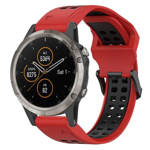 Correa de Silicona para Garmin Fenix 5 Plus 22mm con Hebilla Inversa Dos Colores (Rojo + Negro)