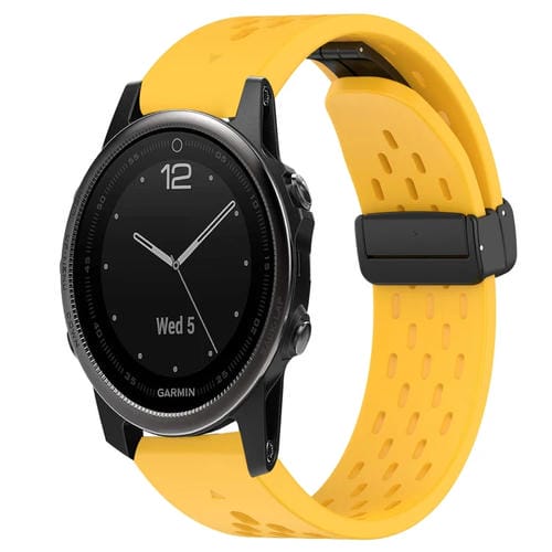 Correa de Silicona para Garmin Fenix 5S con Orificio y Hebilla Plegable de 20mm (Amarillo)