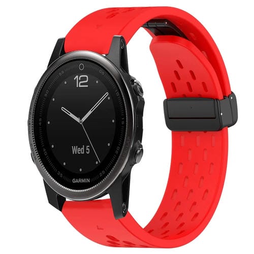 Correa de Silicona para Garmin Fenix 5S Plus con Orificio para Hebilla Plegable de 20mm (Rojo)