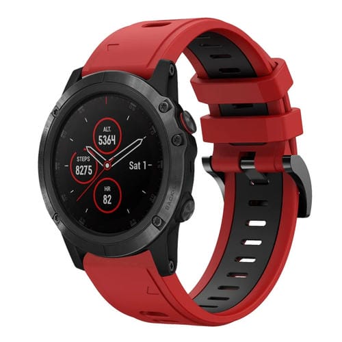 Banda de Reloj Silicona Deportiva Garmin Fenix 5X Plus 26mm (Rojo + Negro)