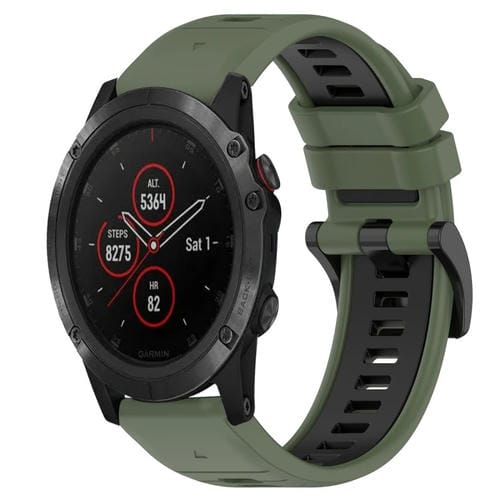 Correa para Garmin Fenix 5X Plus 26mm silicona deportiva bicolor (Verde Oliva + Negro)