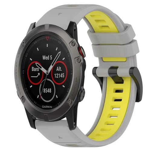 Correa para Garmin Fenix 5X Sapphire 26mm Silicona Deportiva Bicolor (Gris + Amarillo)