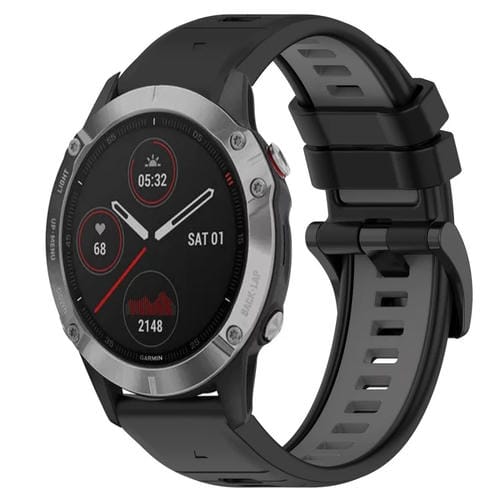 Correa de silicona 22mm para Garmin Fenix 6 GPS Sports bicolor (Negro + Gris)