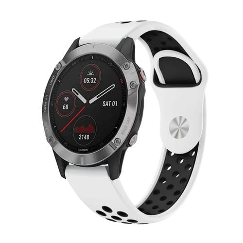 Banda de Reloj silicona para Garmin Fenix 6 GPS 22mm transpirable (Blanco + Negro)