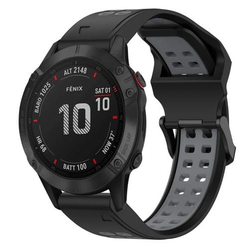 Correa de Reloj para Garmin Fenix 6 Pro 22mm Silicona con Hebilla Inversa Dos Colores (Negro + Gris)